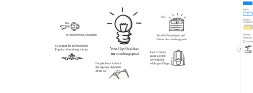 Seit einigen Wochen hat Jörg mit YourFlip darum ein eigenes Startup gegründet. Mit YourFlip ist es möglich, mithilfe einer Vielzahl an Grafiken und Vorlagen professionelle Online-Flipcharts zu gestalten und sich diese für den Einsatz in der analogen Welt bei Bedarf ausdrucken und zusenden zu lassen. Die Idee fanden wir so klasse, dass wir kurzerhand mit Jörg eine Kooperation eingegangen sind und nun 50 seiner wunderbaren Grafiken auf unserem digitalen Whiteboard nutzen dürfen.
