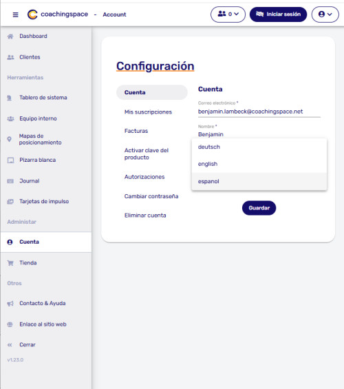 Mit der neuen spanischen Sprachversion geht coachingspace einen weiteren Schritt in Richtung internationaler Coaching-Plattform. Nach der englischen Version ist die gesamte Oberfläche nun auch auf Spanisch verfügbar – für Coaches, Berater:innen und Klient:innen im internationalen und interkulturellen Kontext.